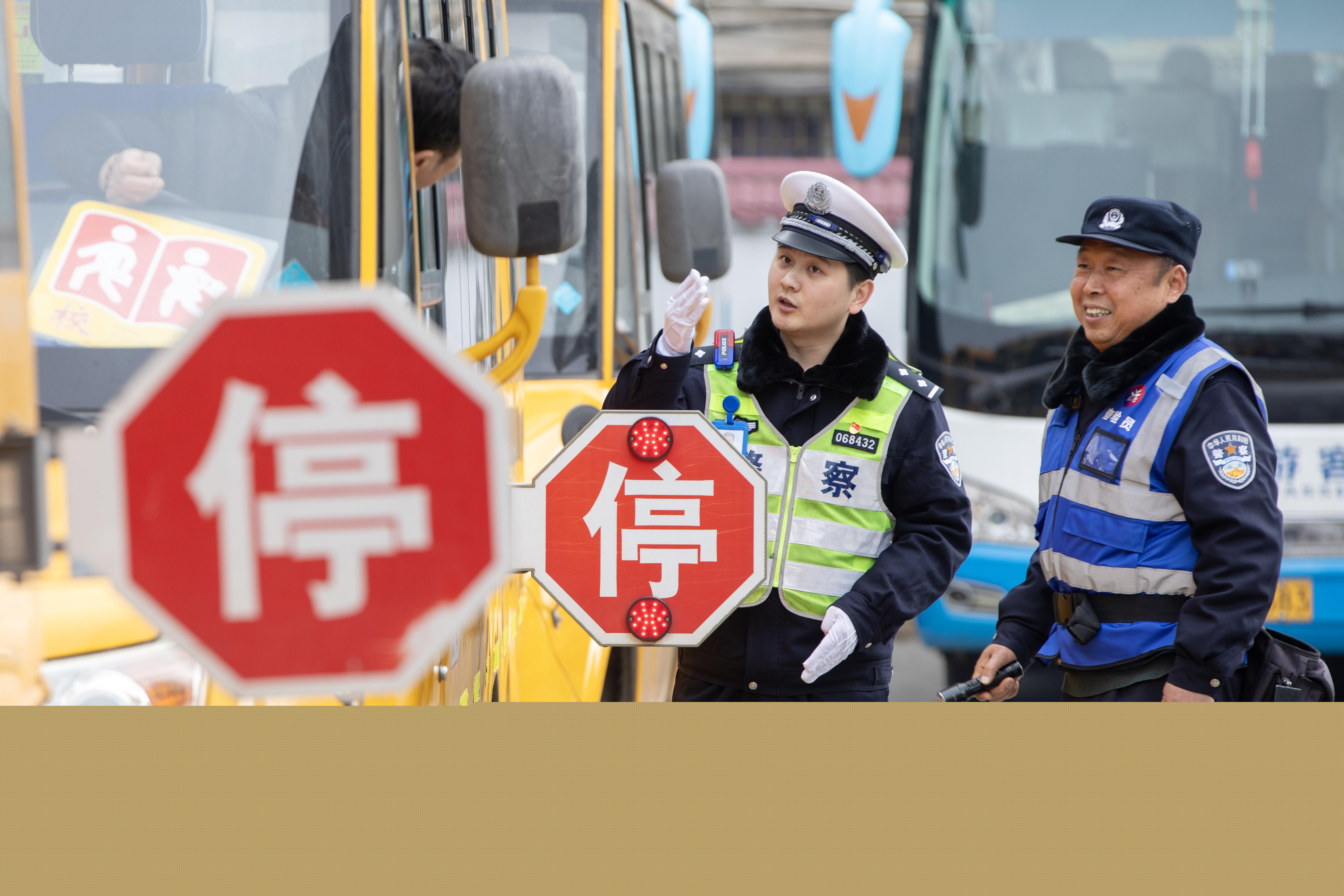 圖為民警檢查校車。